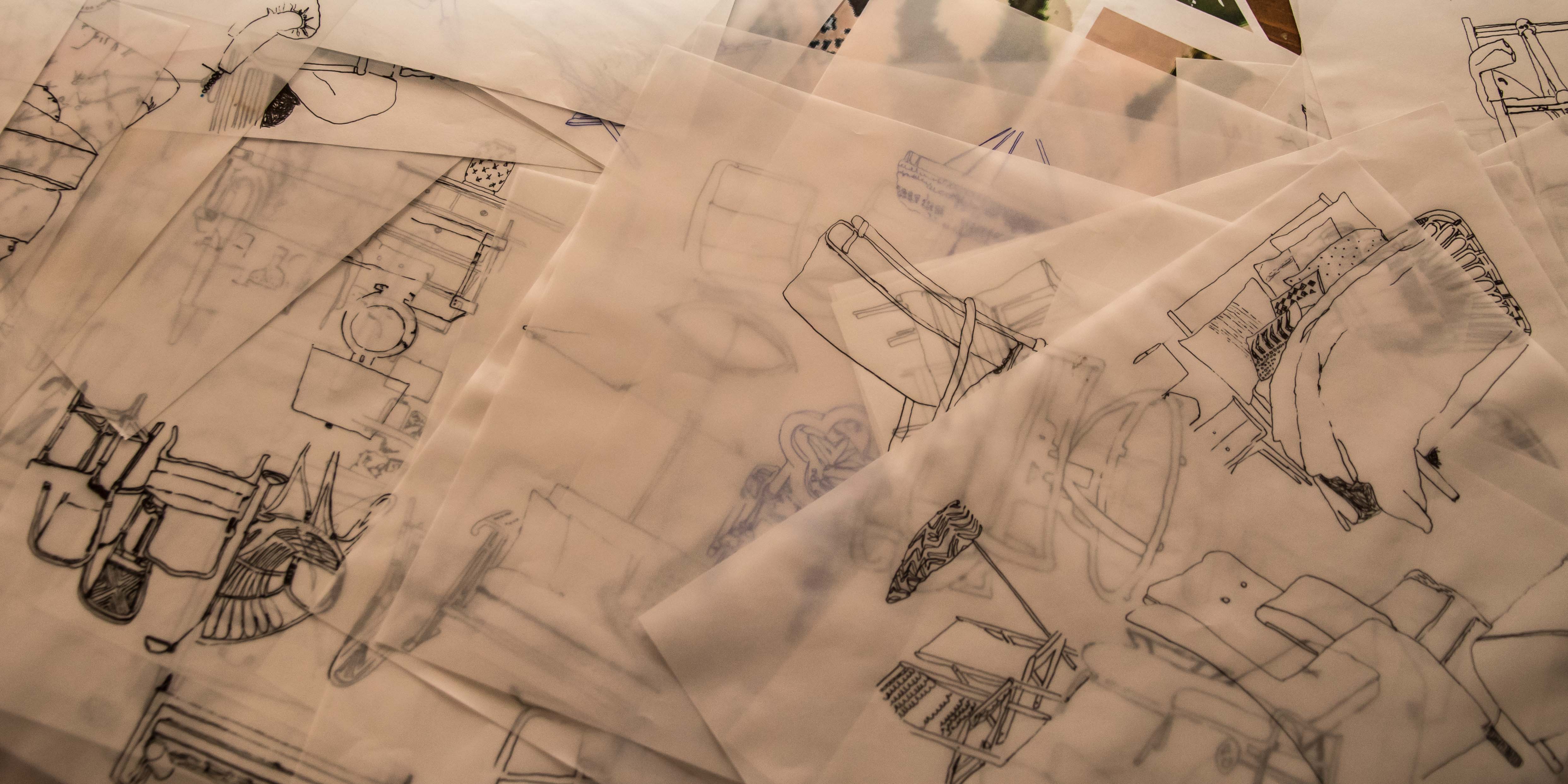 “The images used in my paintings come from this pile of furniture catalogs that I had or that were given to me. I look for items that appeal to me and I draw them.”