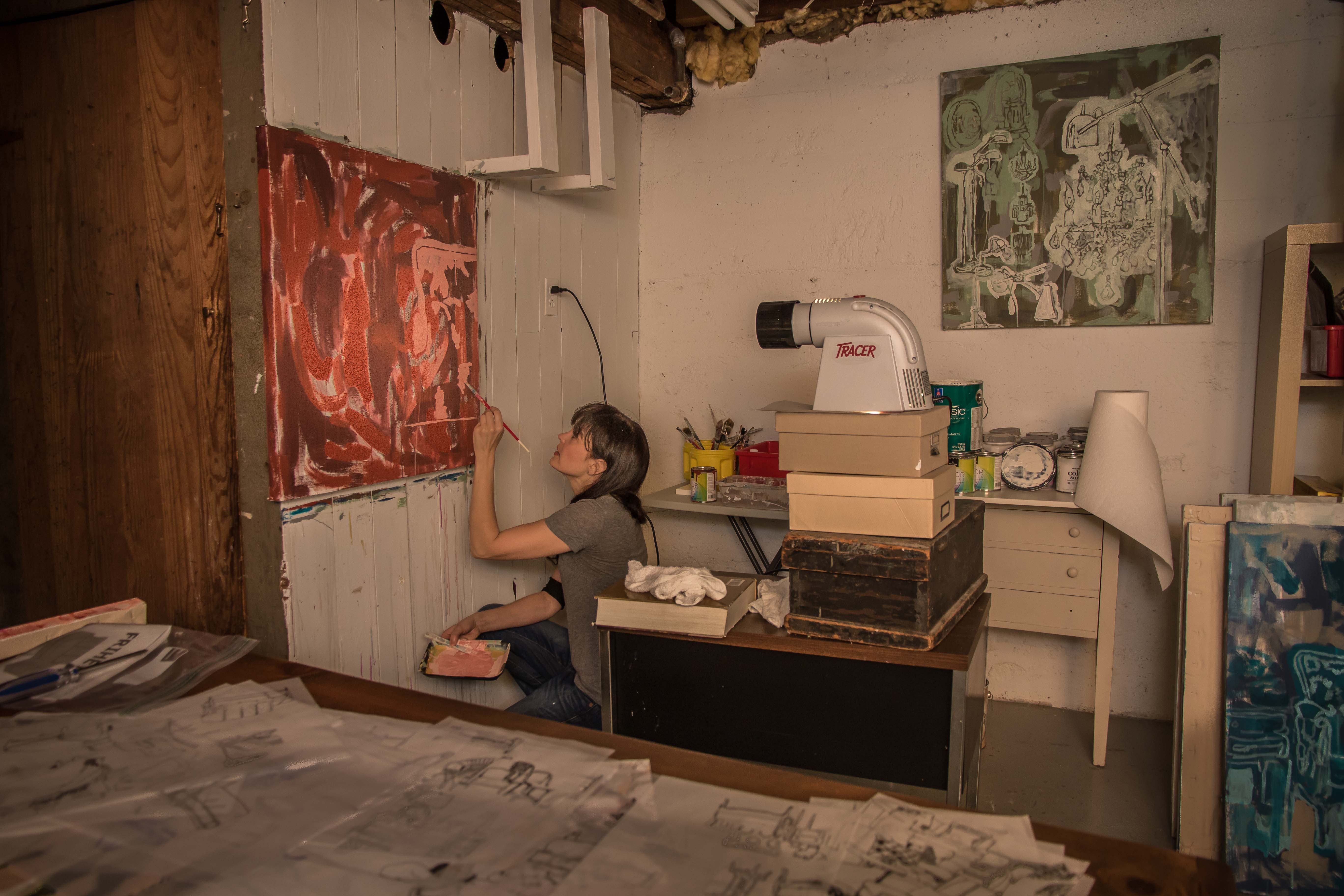 An artist friend said I had to meet Mychaelyn Michalec, a painter who was creating fabulous work in her basement in the dark. My friend knew I would be intrigued and would want to arrange a photo shoot, which I did.